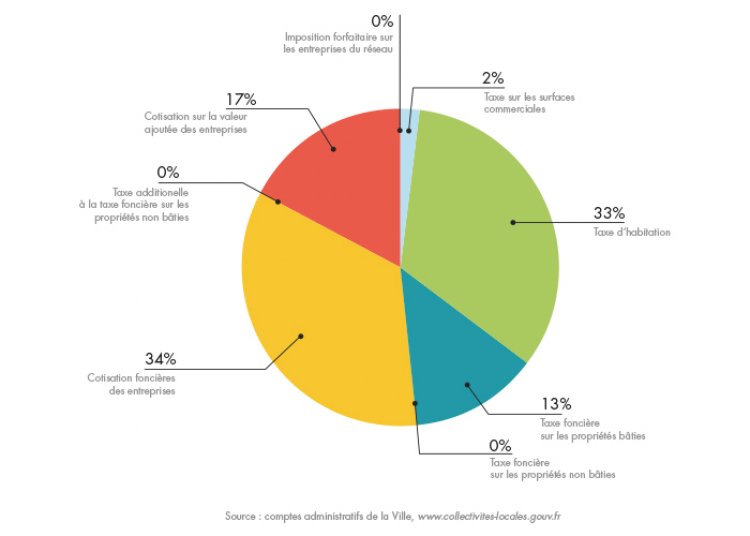 L’essentiel des ressources fiscales de la communauté urbaine est constitué par le produit de la cotisation foncière des entreprises (ex-taxe professionnelle) (34 %) et par une fraction de la taxe d’habitation (33 %).